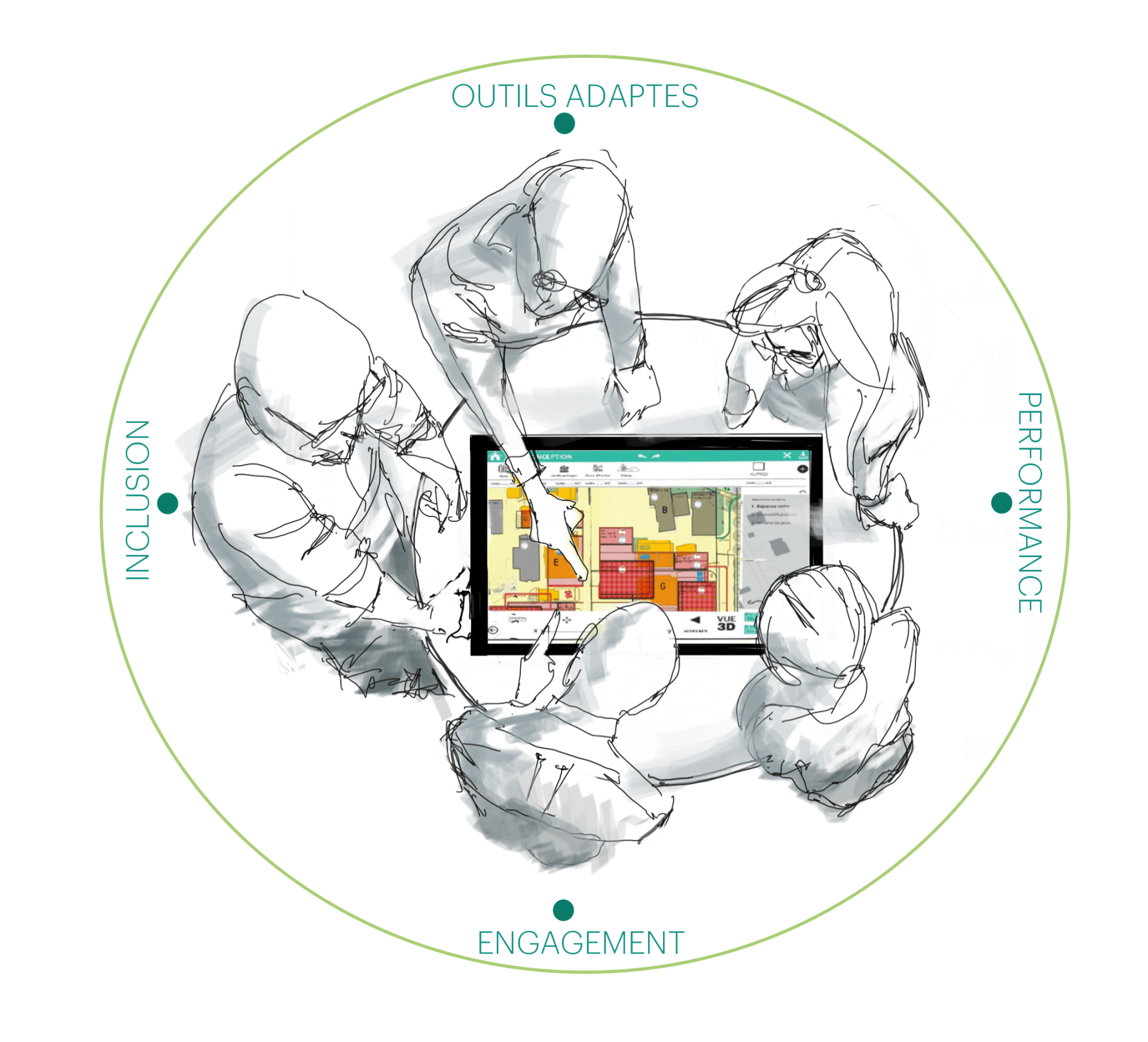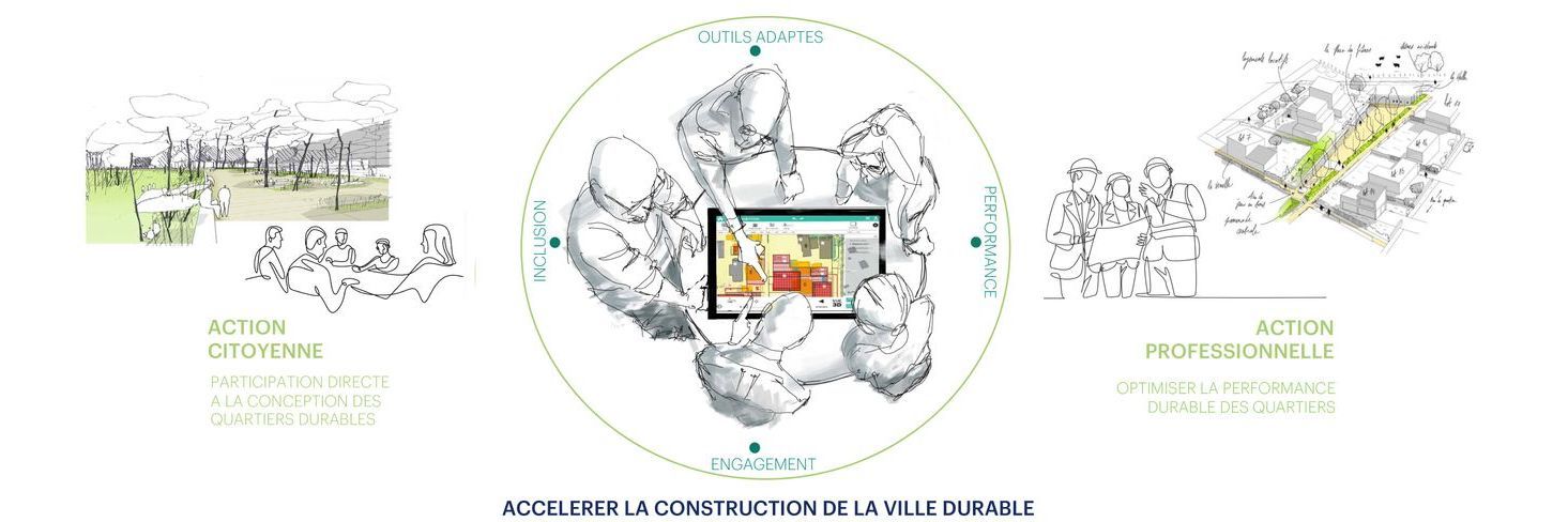 L'urgence à construire la ville durable nécessite le concours de l'ensemble des acteurs de la ville, qu'il soit porteurs de projets publics comme privés, professionnels de la construction comme citoyens et ce, dès la phase d'élaboration des projets de quartier.